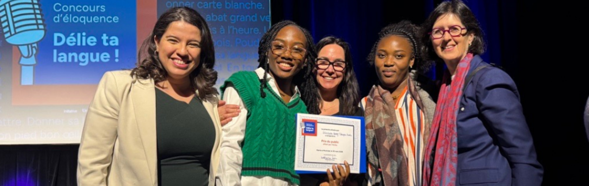 Toronto, le 31 mars 2026 — Ghislaine Kerry Tchoupou Kuete, étudiante au baccalauréat en études des Environnements urbains à l’Université de l’Ontario français (UOF) a remporté le Prix du public lors de la finale nationale du concours d’éloquence Délie ta langue, tenue le 30 mars à Montréal.