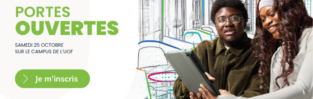 Le samedi 25 octobre 2025, l’UOF ouvre ses portes au grand public pour une journée immersive sur notre campus au coeur de Toronto. Venez en apprendre davantage sur nos programmes innovants – dont le nouveau Baccalauréat en Éducation accéléré (B.A. + B.Éd. en 4 ans seulement)et le Baccalauréat en Éducation consécutif (16 mois à temps plein) –, rencontrer nos professeurs, explorer la vie étudiante dynamique et obtenir toutes les réponses à vos questions sur le processus d’admission et l'aide financière.